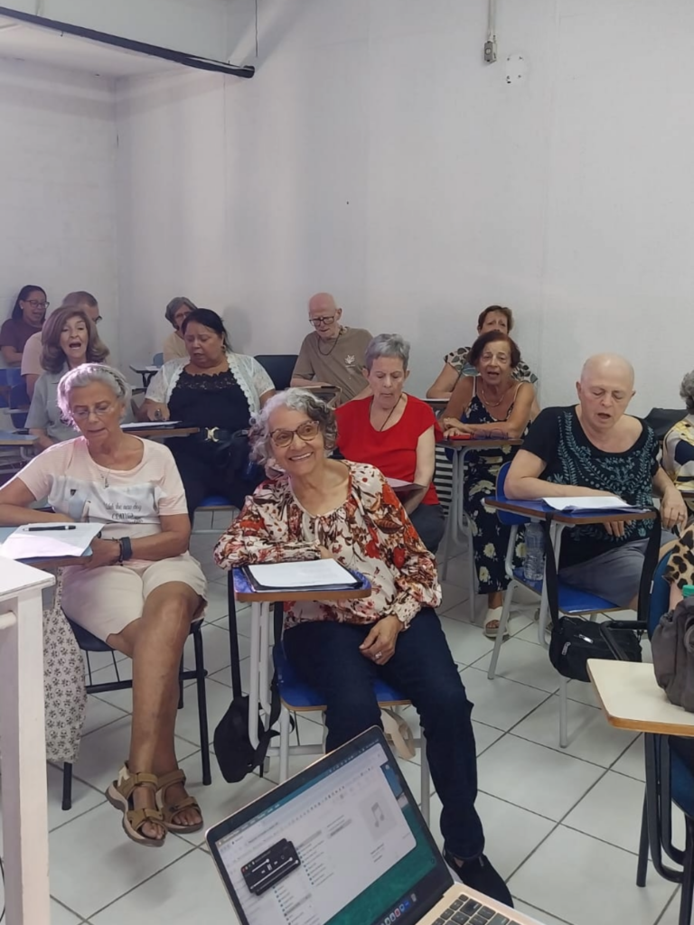 A cada encontro, o grupo se reúne para viver a música de forma coletiva, fortalecendo a presença, a conexão e o bem-estar. O canto estimula corpo e mente — contribuindo para a respiração, a coordenação e a memória, além de aproximar as pessoas e fortalecer vínculos.